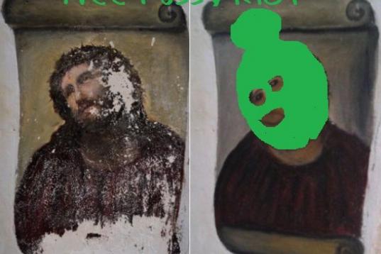 Ecce Homo: Monegros también tiene una mala restauración de un ángel y una virgen en Sariñena (Huesca) (FOTOS)