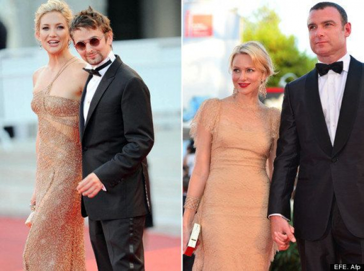 En la alfombra roja del festival de cine de Venecia también destacaron Kate Hudson, actriz de 'The Reluctant Fundamentalist' (acompañada de su pareja, el cantante del grupo Muse, Matthew Bellamy), y Naomi Watts, pareja de otro de los protagonistas, Liev Schreiber, eligieron vestidos de color maquillaje para inaugurar la pasarela de flashes La Mostra.