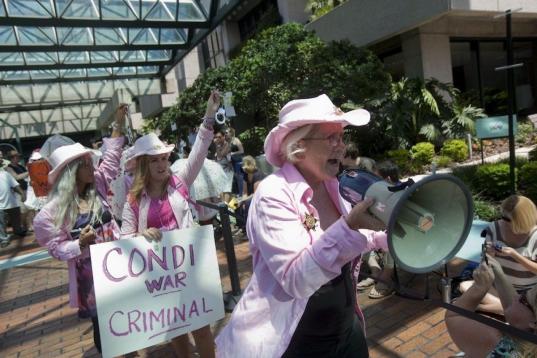 Manifestantes de del Pink Code se reúnen durante la Convención Nacional Republicana en 28 de agosto de 2012 en el centro de Tampa, Florida. Los manifestantes protestaron por la participación en las guerras de plomo de Estados Unidos en Afgani...