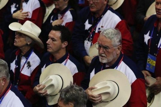 Los miembros de la delegación de Texas pronuncian el juramento durante la Convención Nacional Republicana.