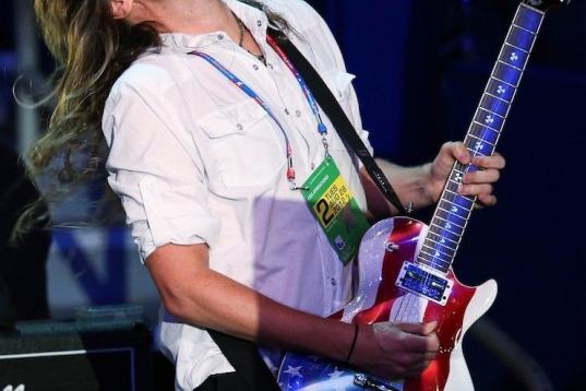 El guitarrista Joel Hoekstra toca durante una prueba de sonido durante la Convención Nacional Republicana.