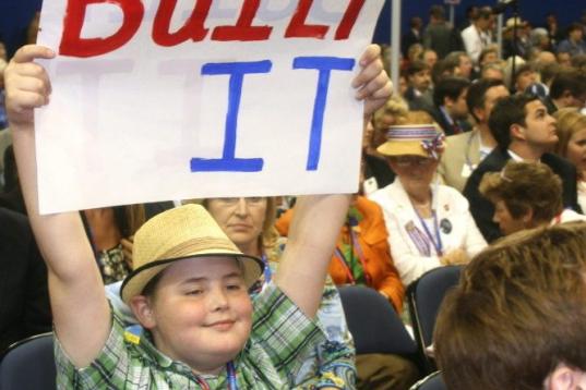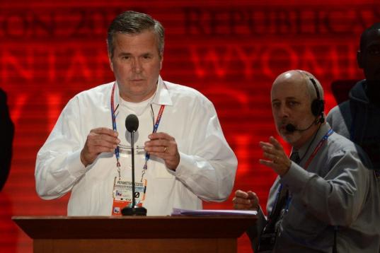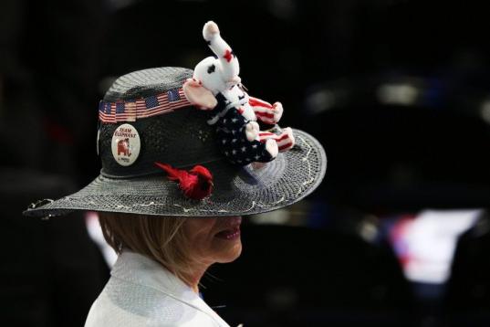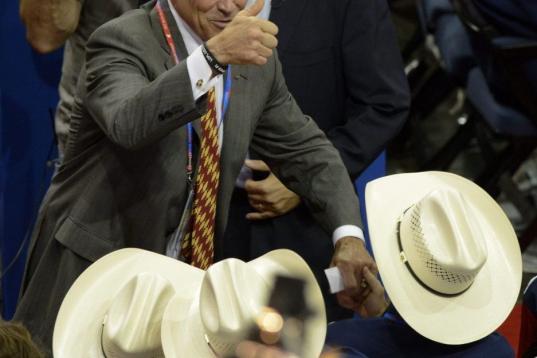 Un delegado de Texas señala algo en el Tampa Bay Times Forum en Tampa, Florida, durante la Convención Nacional Republicana.