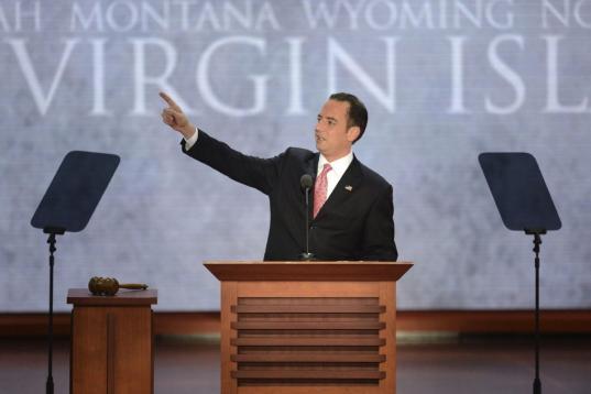 El presidente del Comité Nacional Republicano, Reince Preibus, se dirige a la audiencia durante la Convención Nacional Republicana