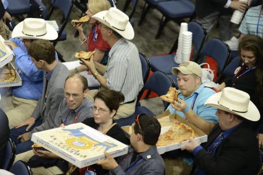 Varios delegados republicanos de Texas meriendan antes del comienzo de la Convención