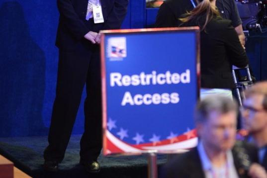 Vista de los sillones vacíos de los ponentes de la Convención Nacional Republicana en el Tampa Bay Times Forum