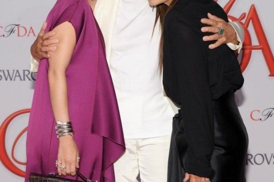 Lauren Hutton lo lleva de maravilla. Aquí, con las Olsen en los premios de la moda estadounidense que las ha consagrado como diseñadoras.