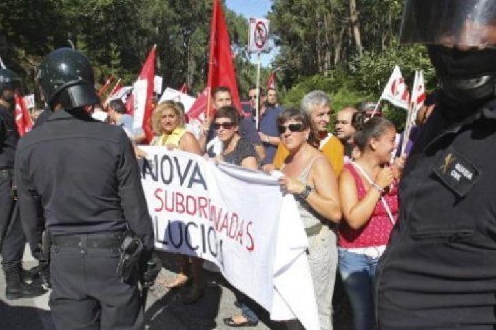 Rajoy ha pronunciado estas palabras cerca de cientos de afectados por las preferentes, que se han concentrado en las inmediaciones del castillo de Soutomaior, en Pontevedra, donde tenía lugar el acto del PP. Los manifestantes, con bocinas y pitos, portaban pancartas en las que se podían leer consignas como "Preferentes engaño, Gobierno cómplice" y "Cacos". Frente a ellos, los antidisturbios organizaron un cordón policial para impedir que cortasen el acceso por carretera de los coches.