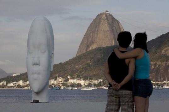 ¿Qué puede ser mejor que bañarse en la playa de Botafogo, en Río de Janeiro? Hacerlo bajo la mirada de una obra de arte.