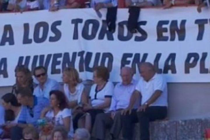 En las gradas podía verse una pancarta que rezaba lo siguiente: "Sí a los toros en TVE y a la juventud en la plaza".