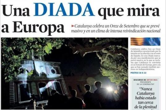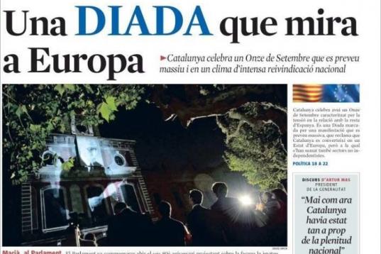 "La Diada 2012 ha galvanizado un estado de ánimo latente desde hace tiempo en la sociedad catalana, pero la crisis económica, el clima político y el sentimiento identitario lo han hecho estallar". Enric Juliana, adjunto a la dirección de La Vanguardia, está convencido de que en esta ocasión la fiesta de Cataluña encierra un espíritu más independentista que en años anteriores, tal y como vaticinan los convocantes y partidos políticos. Aunque se mantienen los actos oficiales de las ofrendas florales a los monumentos de Rafael Casanova y Josep Moragues, la atención se traslada a la manifestación que por la tarde recorrerá el Passeig de Gràcia bajo el lema unitario de "Catalunya, nuevo Estado de Europa". Organizada por la Assemblea Nacional Catalana (ANC), se prevé que la marcha rompa con las cifras de asistencia anteriores, en las que unos pocos de miles de independentistas rendían tributo a los caídos en la Fossar de les Moreres. Por de pronto, se han fletado mil autobuses desde distintos puntos de Cataluña, se ha modificado el recorrido tradicional, las ventas de senyeras y esteladas (la bandera independentista) se han disparado y la marcha ha centrado el debate político de las últimas semanas.