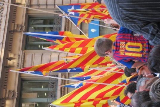 Así, la marcha ha arrancado por el centro de una capital catalana colapsada de manifestantes y llena de estelades y senyeres, en un ambiente festivo y reivindicativo. Entre las pancartas, que reclaman el derecho a decidir de Catalunya, se encuentran lemas escritos en inglés (Yes we can y Catalonia is not Spain son de los más repetidos) y alemán, así como banderas europeas.