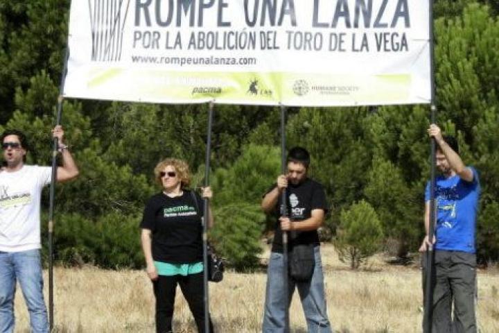 Un grupo de activistas, venidos de distintos puntos de España y convocados por colectivos antitaurinos a través de redes sociales, ha sido desalojado a la fuerza por la Guardia Civil minutos antes de las 11.00 horas, cuando comienza, cada segundo martes de septiembre, el festejo, que consiste en matar con lanzas un toro en el campo.