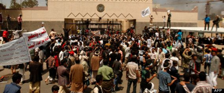 A primera hora de este jueves, centenares de manifestantes han irrumpido por poco tiempo en la Embajada de EEUU en Saná. Según pudo constatar Efe, los manifestantes derribaron la puerta principal del complejo de la legación diplomática, donde también se ubica la residencia del embajador.
