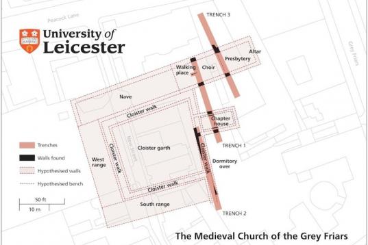 Tras siglos de especulaciones sobre dónde podía descansar... un grupo de arqueólogos británico ha encontrado debajo de un aparcamiento de Leicester los restos de una persona que podría ser de Ricardo III. El rey murió en 1485 en la Batalla de Bosworth, en el centro de Inglaterra. Sus restos, desaparecidos desde entonces, habrían acabado en el monasterio franciscano de Greyfriars, cuyas ruinas se encuentran bajo ese aparcamiento.