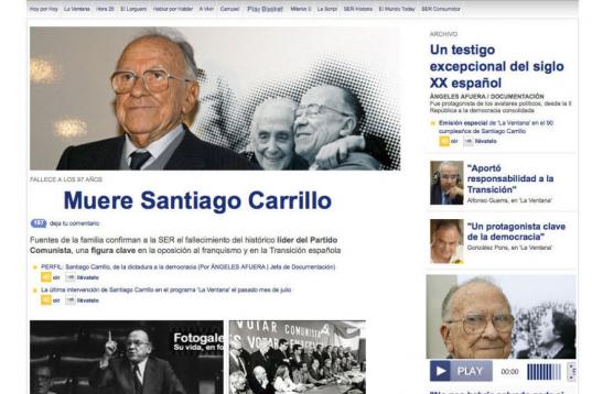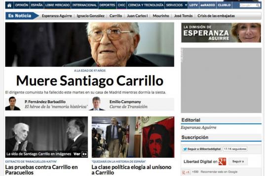 Santiago Carrillo, fallecido este martes a los 97 años, nunca ha eludido hablar de la matanza de Paracuellos, aunque la insistencia de las preguntas llegó a irritarle y, en momentos puntuales, le hizo perder los nervios. En una de esas situaciones de hartazgo mandó "al infierno" al periodista Luis del Olmo: "Me ha hecho usted esa pregunta cada vez que me ha interrogado. Le he contestado. Estoy hasta el copete de escucharle a usted preguntarme lo mismo cada vez que hemos hablado", se quejó.