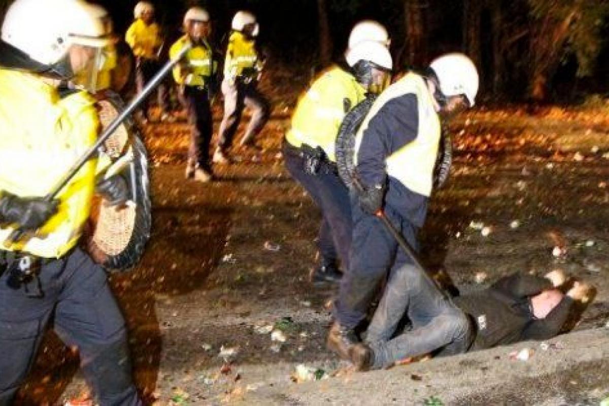 La concentración acabó en enfrentamientos entre la policía y los jóvenes, que tiraron bicicletas, botellas, piedras y petardos, a lo que las fuerzas policiales respondieron con gases lacrimógenos y bombas de humo. Sobre las 03.00 de la madrugada hora local (01.00 GMT) la policía consiguió disolver a los jóvenes, que además ocasionaron destrozos en escaparates y garajes de casas, desvalijaron un supermercado y destruyeron señales de tráfico y postes de la luz.