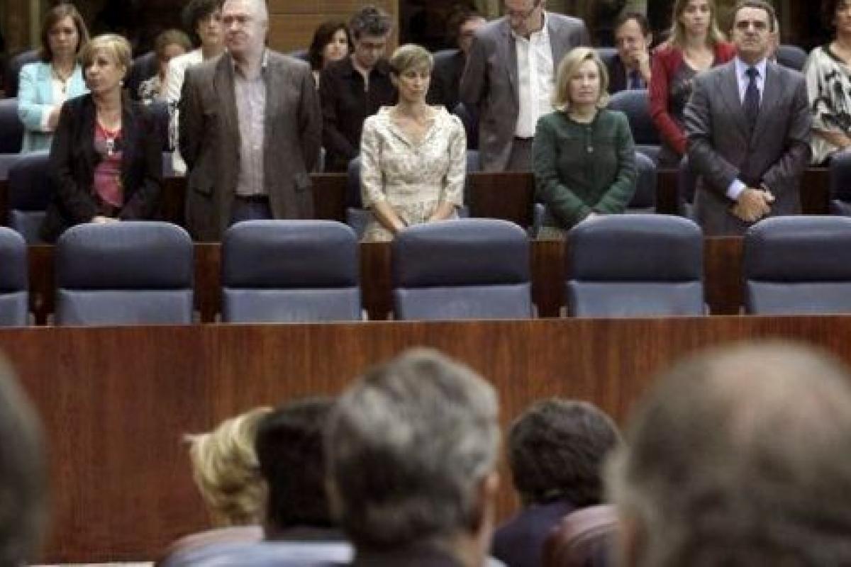 Fueron los diputados del PSM, esta vez, quienes tras las declaración se pusieron en pie en silencio, secundados a continuación por los de IU y UPyD, y por algunos parlamentarios del PP.