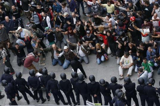 En la Sexta Avenida, el periodista y fotógrafo Jonan Basterra estaba sentado en esos momentos buscando información sobre las manifestaciones del 25-S cuando captó esta instantánea.