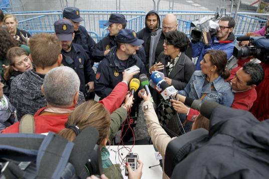 La Policía Nacional identifica a un grupo de representantes de la coordinadora 25-S, antes de la rueda de prensa que han ofrecido esta mañana