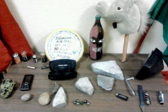 Los objetos intervenidos por la Policía Nacional en la manifestación de ayer