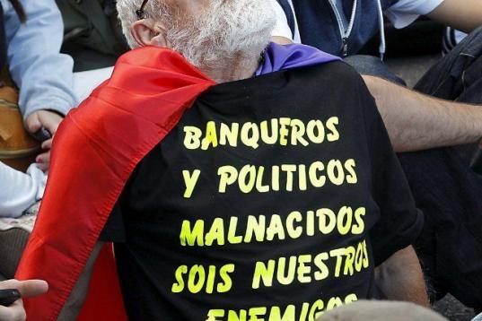 Un manifestante porta una pancarta que reza: "Se vende España"