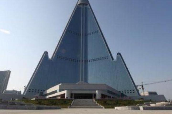 El edificio más alto y misterioso de Corea del Norte ha sido desvelado en fotografías por una agencia de viajes china. El Ryugyong Hotel ha estado en construcción desde 1987 y fue planeado para reflejar el poderío del régimen comunista del país en la década de los 80.
