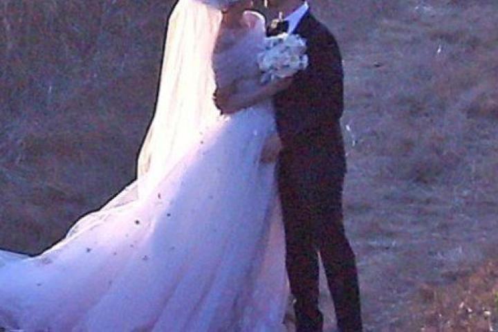 La Catwoman de El caballero oscuro: la leyenda renace (2012), la última película de la saga Batman, contrajo matrimonio vestida de Valentino en una residencia privada en Big Sur, en la costa californiana. La pareja había realizado previamente una fiesta de compromiso en Nueva York, en la que presentaron a sus respectivas familias. Unas 100 personas les acompañaron en el enlace, según People.