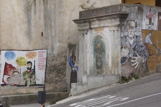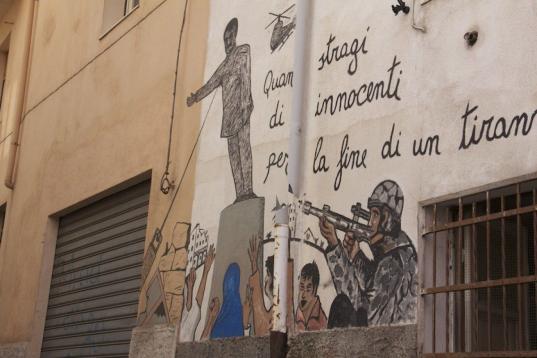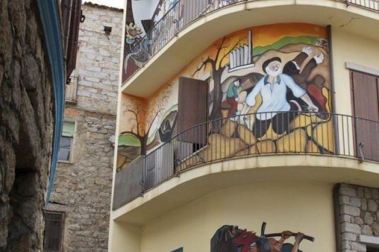 Orgosolo, en el interior de Cerdeña, fue un pueblo temido por sus bandidos. Ahora, en cambio, es conocida por sus murales de contenido sociopolítico, que un profesor de instituto comenzó a pintar en los 70 y que recorren momentos históricos, también del siglo XXI, como los atentados del 11 de septiembre de 2001 en Estados Unidos o la caída de Sadam Hussein.