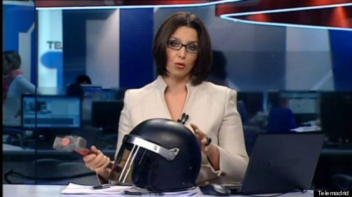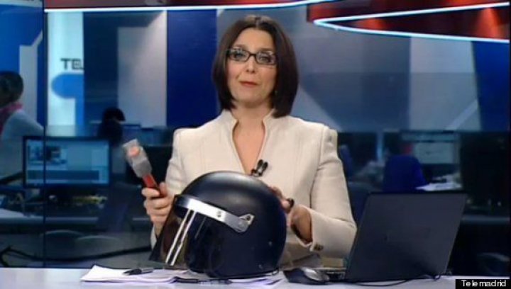 Telemadrid informa del fallo de Pedraz con un mazo y un casco antidisturbios (VÍDEO)