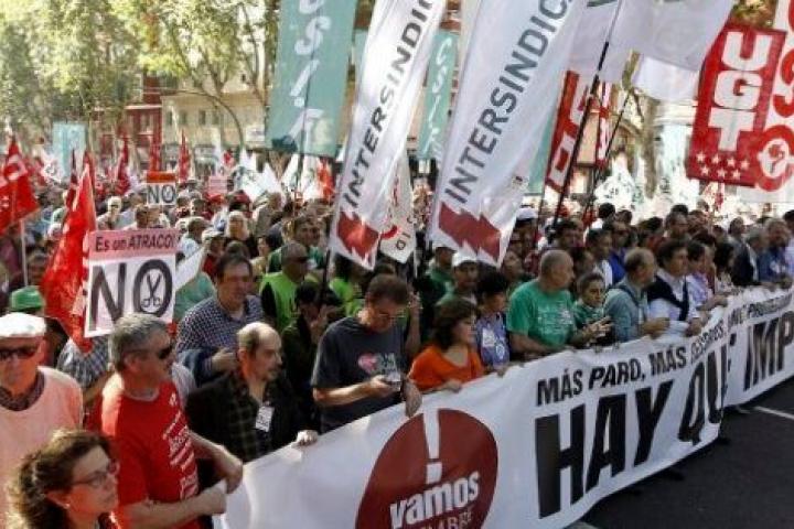 Antes de iniciar la marcha, los secretarios generales de CCOO y UGT, Ignacio Fernández Toxo y Cándido Méndez, respectivamente, han señalado que los presupuestos generales de 2013 provocarán "más recesión y más paro", y han recalcado que la convocatoria de huelga general depende del Ejecutivo. Han exigido, además, que el Gobierno convoque un referéndum sobre los recortes antes de que la situación social se vuelva "explosiva e insostenible".