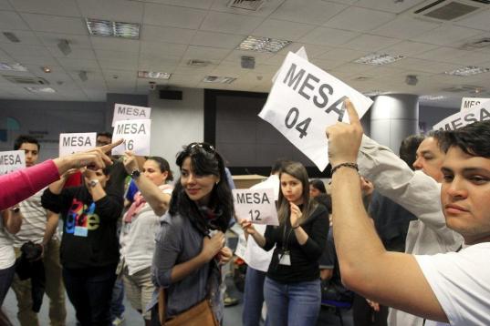 Alrededor de la Secretaría General Iberoamericana también hay encuestadores y algunos grupos que enseñan cómo votar. La ley electoral en Venezuela prohíbe estas expresiones durante la jornada de votación, pero el ambiente festivo desborda la zona. “Está prohibido a 200 metros del centro electoral y hemos pedido a las autoridades locales que nos apoyen, pero aún así lo hacen, no somos tan estrictos como en Venezuela”, reconoce la cónsul González.
