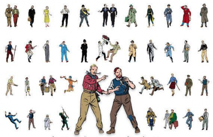 Pero no es el único ejemplo. Blake et Mortimer obtuvieron una segunda vida varios años tras la muerte de su progenitor, Edgar P. Jacobs. Un estilo imitado a la perfección por dos dibujantes reconocidos (André Juillard y Ted Benoit), un guión que contiene todos los ingredientes de los mejores álbumes de los espías del MI6, y ya está: desde entonces no ha decaído el éxito de la serie. He aquí debajo varios dibujos de personajes realizados por Ted Benoit:
