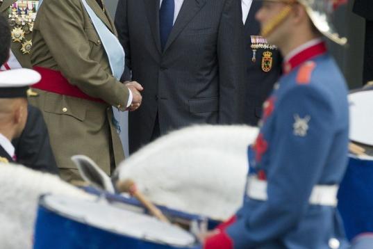 Quienes no han acudido este año ni al desfile ni a la posterior recepción en el Palacio Real son los duques de Palma, que en 2011 sí estuvieron presentes en uno de los últimos actos oficiales en los que estuvo presente Iñaki Urdangarin.