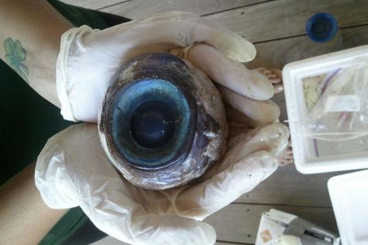 El sorprendido paseante llamó a la Comisión de Conservación de Peces y Fauna y Flora de Florida, que se mostró muy interesada por la enorme órbita ocular, que cabía en dos manos.