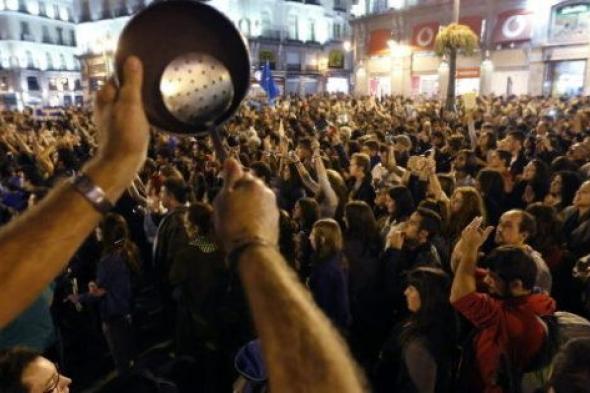 Golpeando cacerolas, sartenes y tapaderas para hacerse oír por los poderes públicos, miles de personas marcharon el sábado por el centro de Madrid para protestar por que los efectos de la crisis recaigan en la población mientras los bancos son rescatados y en contra del pago de la deuda "ilegítima y odiosa".
