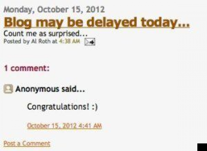 El propio Roth publicó, nada más conocer la noticia, una entrada en su blog titulada: "Mi post puede que se retrase hoy". Dentro del artículo, una sola frase: "Denme por sorprendido".