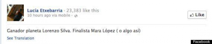 No gustó a muchos usuarios de Twitter las formas de Lucía Etxebarria de anunciar en su cuenta personal los ganadores del Premio Planeta, Lorenzo Silva y Mara Torres, "Mara nosequien de TVE", según la autora de Beatriz y los cuerpos celestes. Y no lo hizo mejor en Facebook, donde la rebautizó como "Mara López (o algo así)".