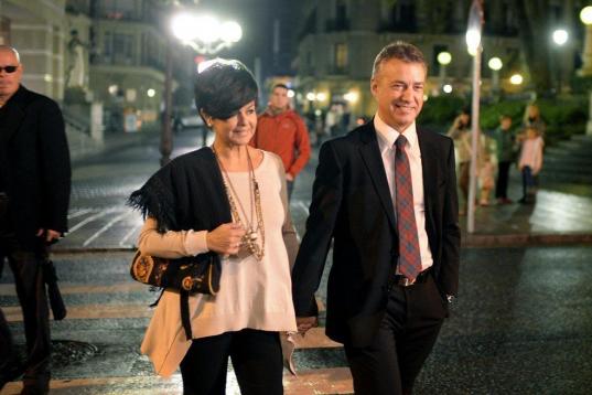 Patxi López pasea con su esposa Begoña por las calles de Vitoria durante la jornada de reflexión.
