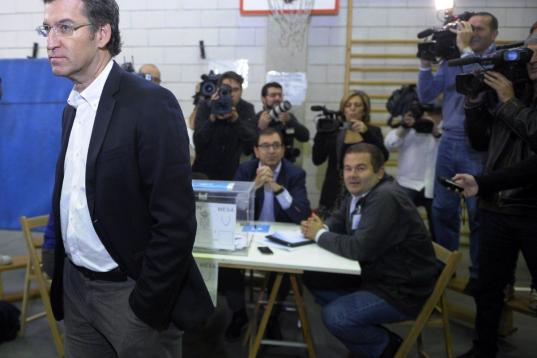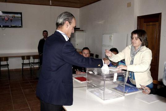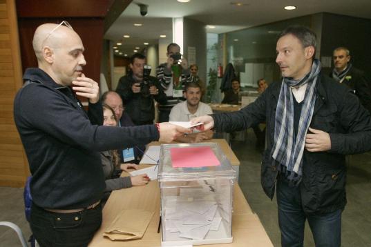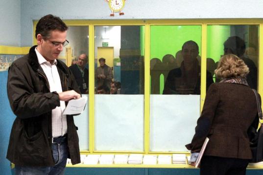 El candidato del BNG a la presidencia de la Xunta de Galicia, Francisco Jorquera, deposita su voto para las elecciones gallegas en la mesa electoral situada en la Asociación de Vecinos de O Castrillón, A Coruña.
