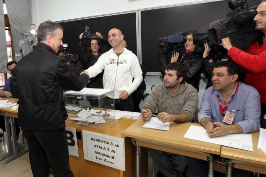 El candidato a lehendakari por el PNV, Iñigo Urkullu, tras votar en un colegio electoral de Durango