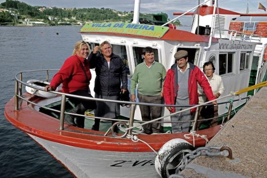 Cinco habitantes de la Isla de Ons, antes de desembarcar para ejercer su derecho al voto durante la jornada electoral gallega, esta mañana en el puerto de Bueu. En Ons residen ocho isleños y la Xunta dispuso el servicio de barco y autobús par...