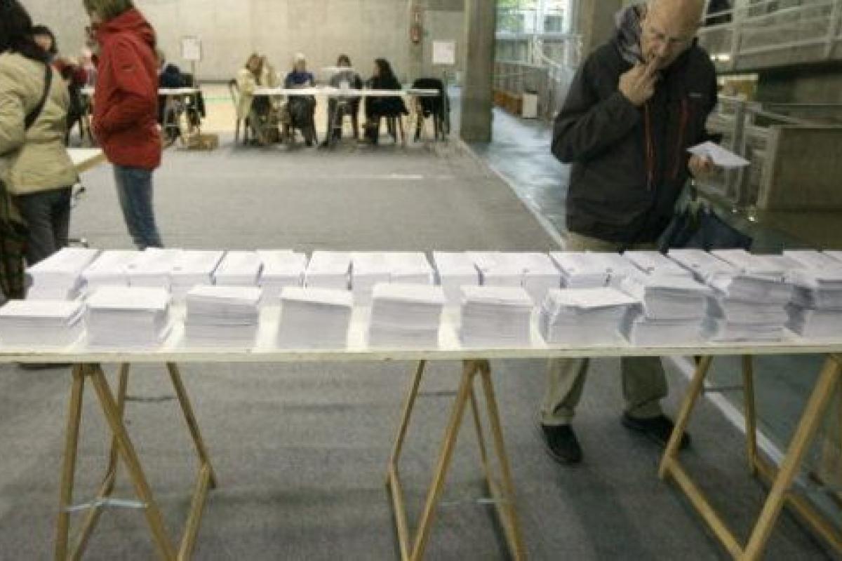 Un votante elige su papeleta en un colegio electoral situado en un centro cívico de Vitoria
