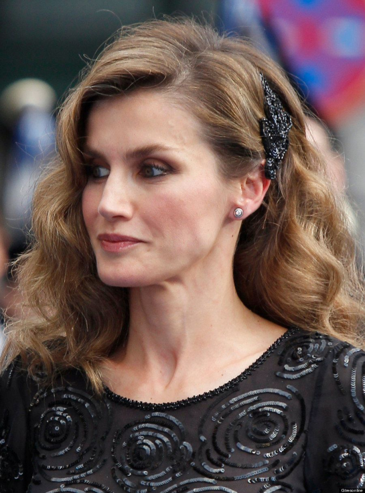 Como una diva de los años 40: Letizia Ortiz optó por la melena ondulada echada a un lado (a lo Verónica Lake) en la entrega de los Premios Príncipe de Asturias 2012. Vestida con un dos piezas de cuerpo negro y falda blanca, la princesa estaba muy favorecida, con las ondas deshechas semirecogidas con un broche negro y un maquillaje intenso en los ojos.