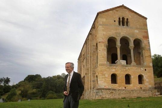 Qué mejor lugar para ofrecer una clase magistral sobre el Prerrománico asturiano. Moneo se ha llevado el Premio Príncipe de Asturias de las Artes.