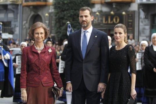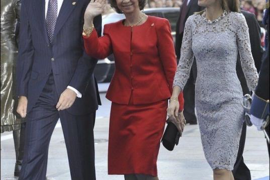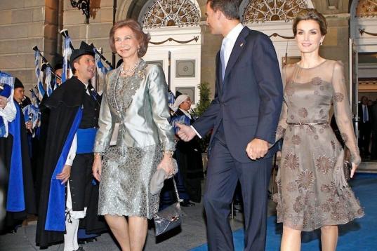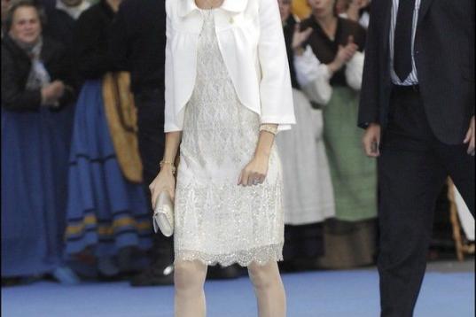 De Felipe Varela, con abrigo beis, en sus primeros premios como Princesa de Asturias.