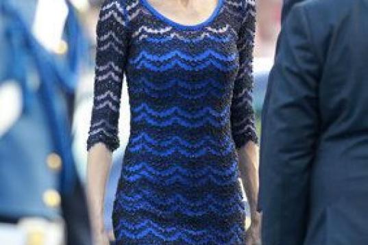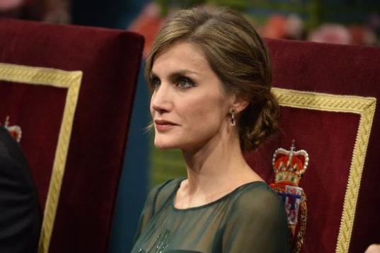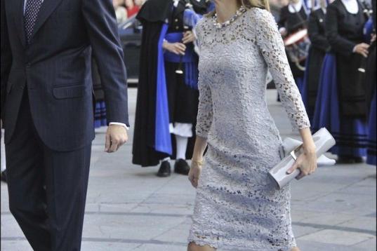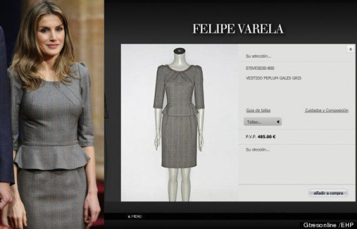 Unas horas antes, en la recepción a los premiados en el Hotel Reconquista, había lucido un modelo en estampado príncipe de gales con peplum de Felipe Varela. El vestido está disponible en su página web: puede ser adquirido por 485 euros.