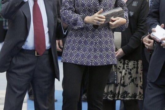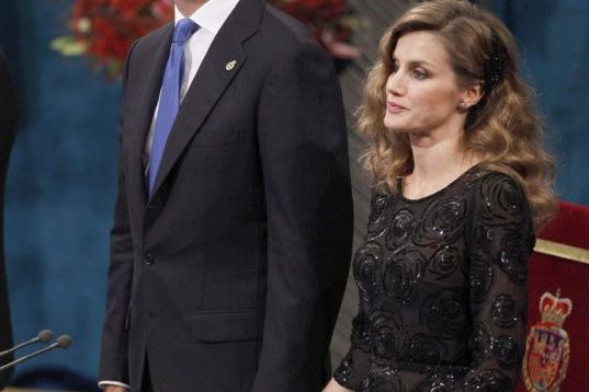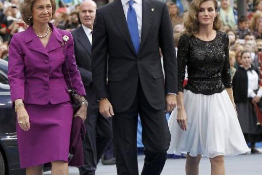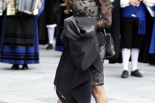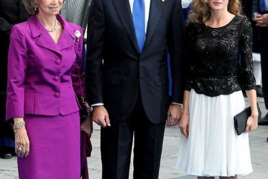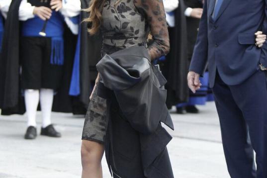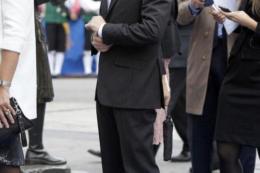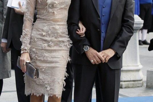 En la imagen podemos ver a Iker Casillas muy sonriente junto a su novia, quien escogió un elegante diseño de Óscar de la Renta que complementó con unos vertiginosos zapatos de tacón de Jimmy Choo volviendo a colapsar así las cámaras de los fotógrafos que repartían sus flashes entre la princesa doña Letizia y ella.
