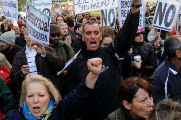 La Coordinadora 25S ha convocado una nueva manifestación en Madrid este sábado para protestar contra los Presupuestos Generales del Estado para 2013. En esta ocasión, salió desde Plaza de España para concluir, una vez más, en la plaza de Cánovas del Castillo, en la que se ubica la Fuente de Neptuno, a escasos metros del Congreso de los Diputados.