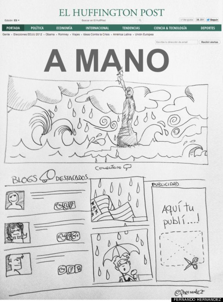 La web de El Huffington Post estuvo este martes caída durante varias horas por la virulencia del huracán Sandy .