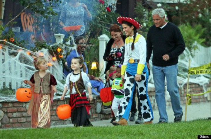 La actriz Sandra Bullock acompañó a su hijo Louis por la calles de Toluca Lake (California) para pedir chuches. Ambos se disfrazaron de personajes de la película Toy Story. Ella de Jessy y él de Buzz Lightyear.